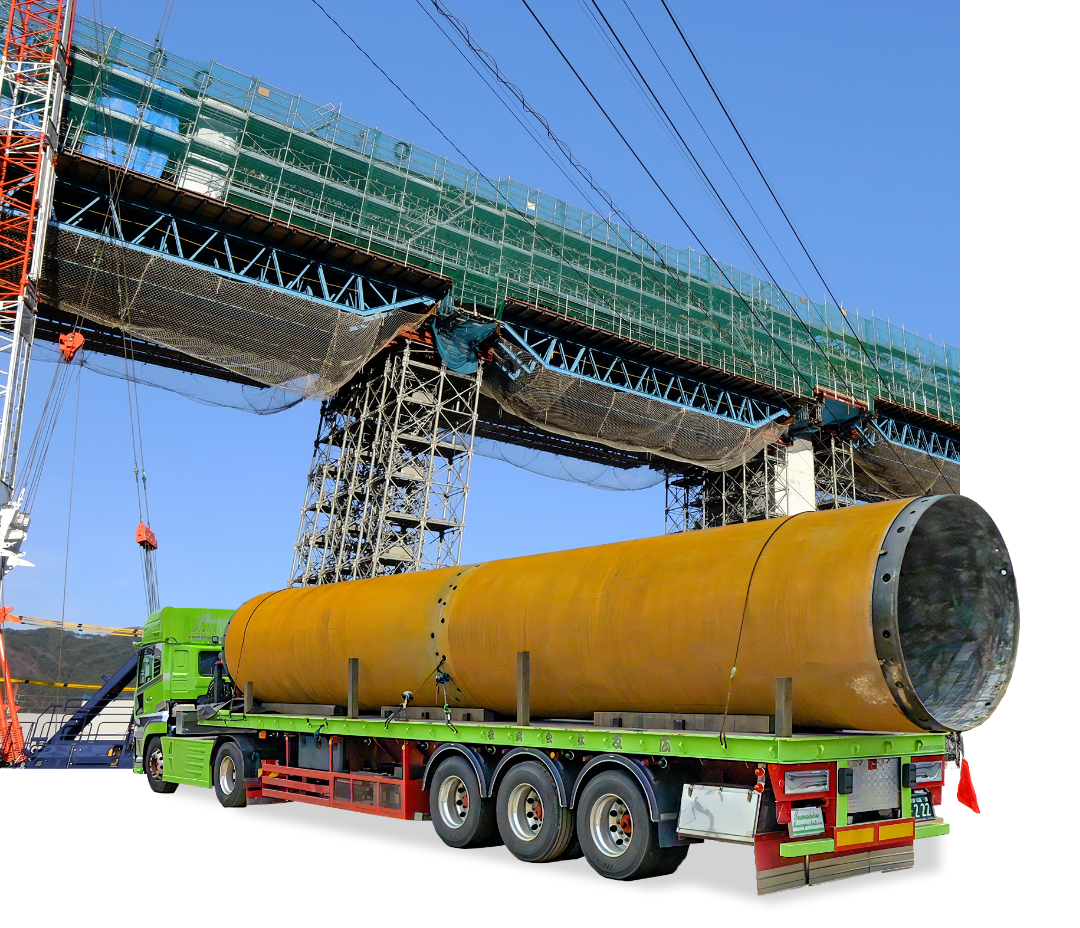 大型荷物や長尺物の輸送に適した多様なトレーラーを保有しており、お客様のニーズに応じた柔軟な輸送を提供します。建設資材を含む幅広い荷物を安全に輸送することで、安心と信頼をお届けします。